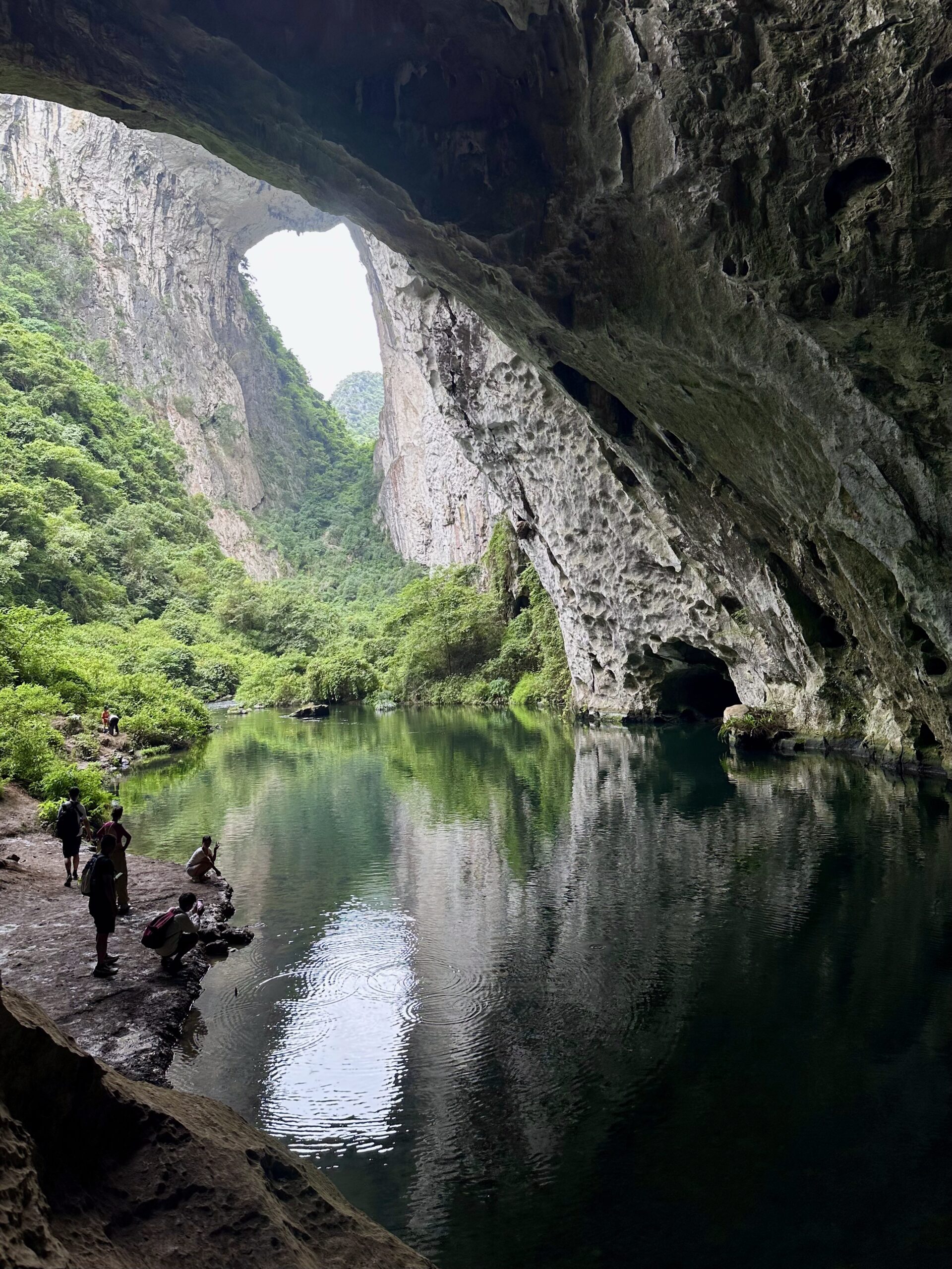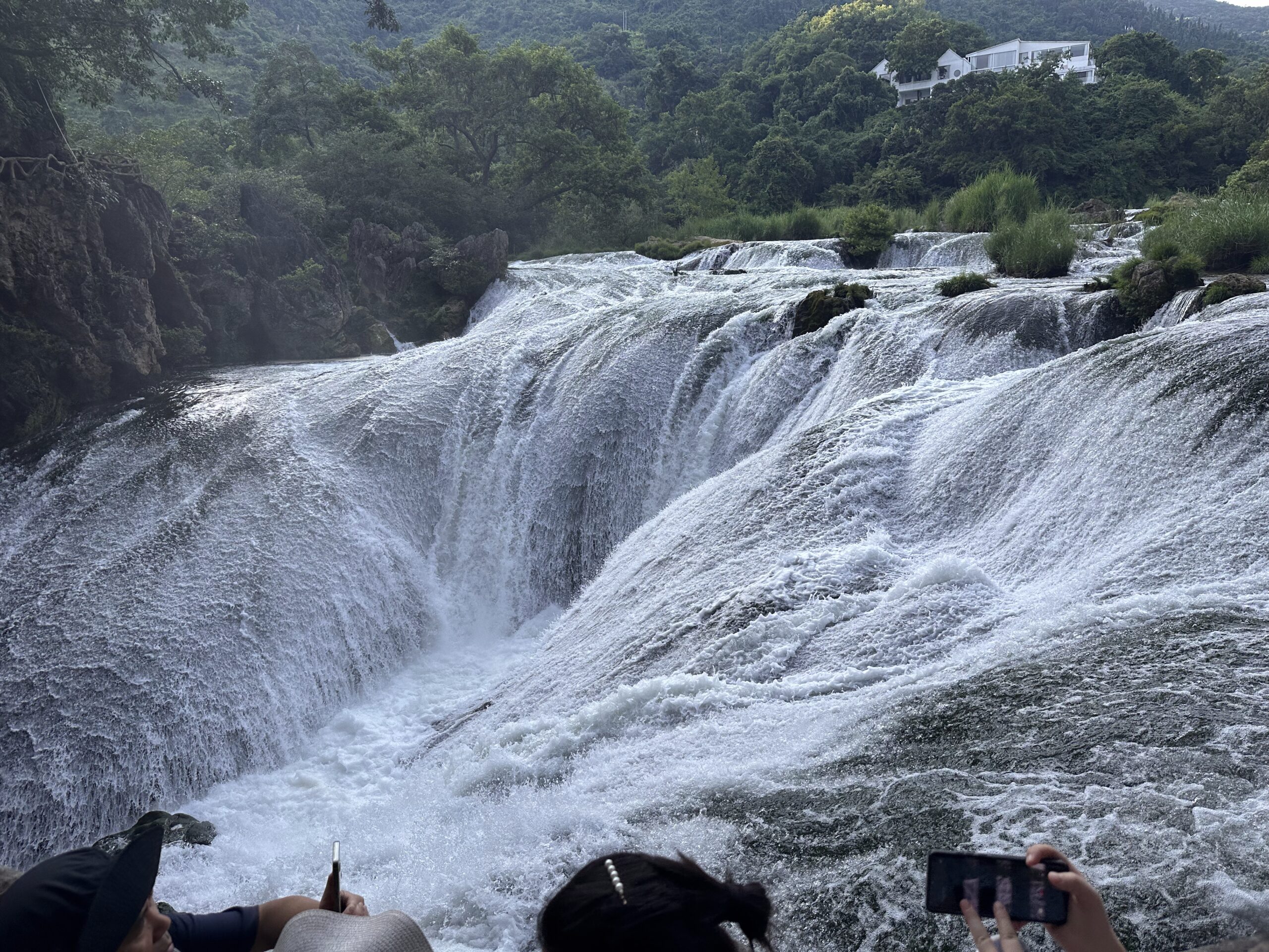 直到走到黄果树瀑布的接驳车入口前,我们都没有想过修改计划,但是最终被接驳车排队的人数惊到了,我们随即很快做了决定,转去天星桥(也就是银链坠潭瀑布),在接驳车入口等待了大约不到 10 分钟车就来了,顺利的到达了天星桥的入口,然后开始一段简单的徒步,说实话整条路线都很舒服,甚至跟浙江的某些地方很像,所以对我们来说没有很大的惊喜,路上边聊边走,最终走到了银链坠潭瀑布,看到瀑布后,其实也是有点失望的,虽然瀑布的现场还可以,但整体来说稍显平淡,并没有给我们很大的瀑布震撼。