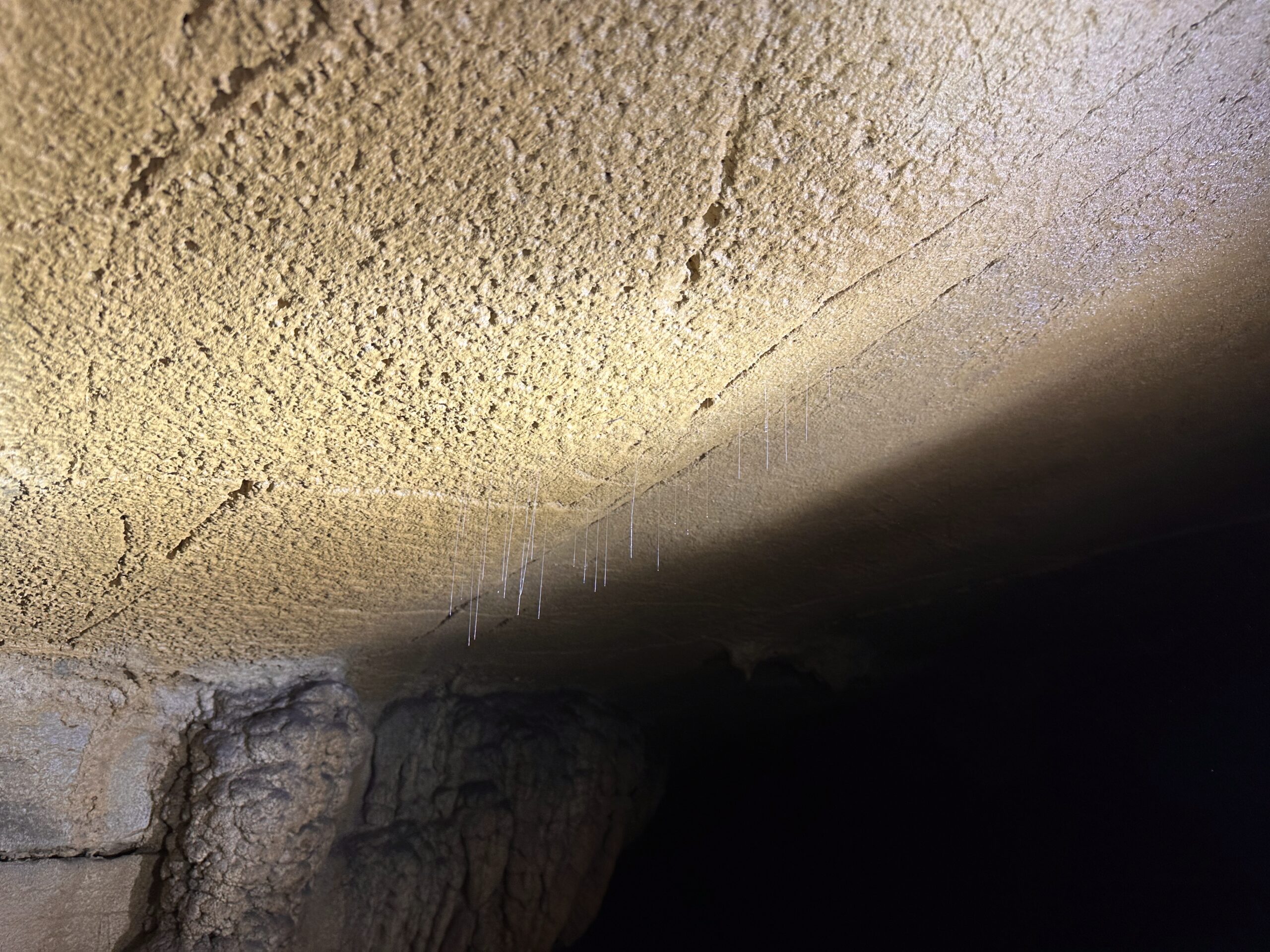 上面图片里这种一条一条线状的就是一种虫子,但是名字记不清了,只记得叫什么帘虫,或者好像是一种荧光虫,如果不拿手电筒找的话,基本很难发现他们。