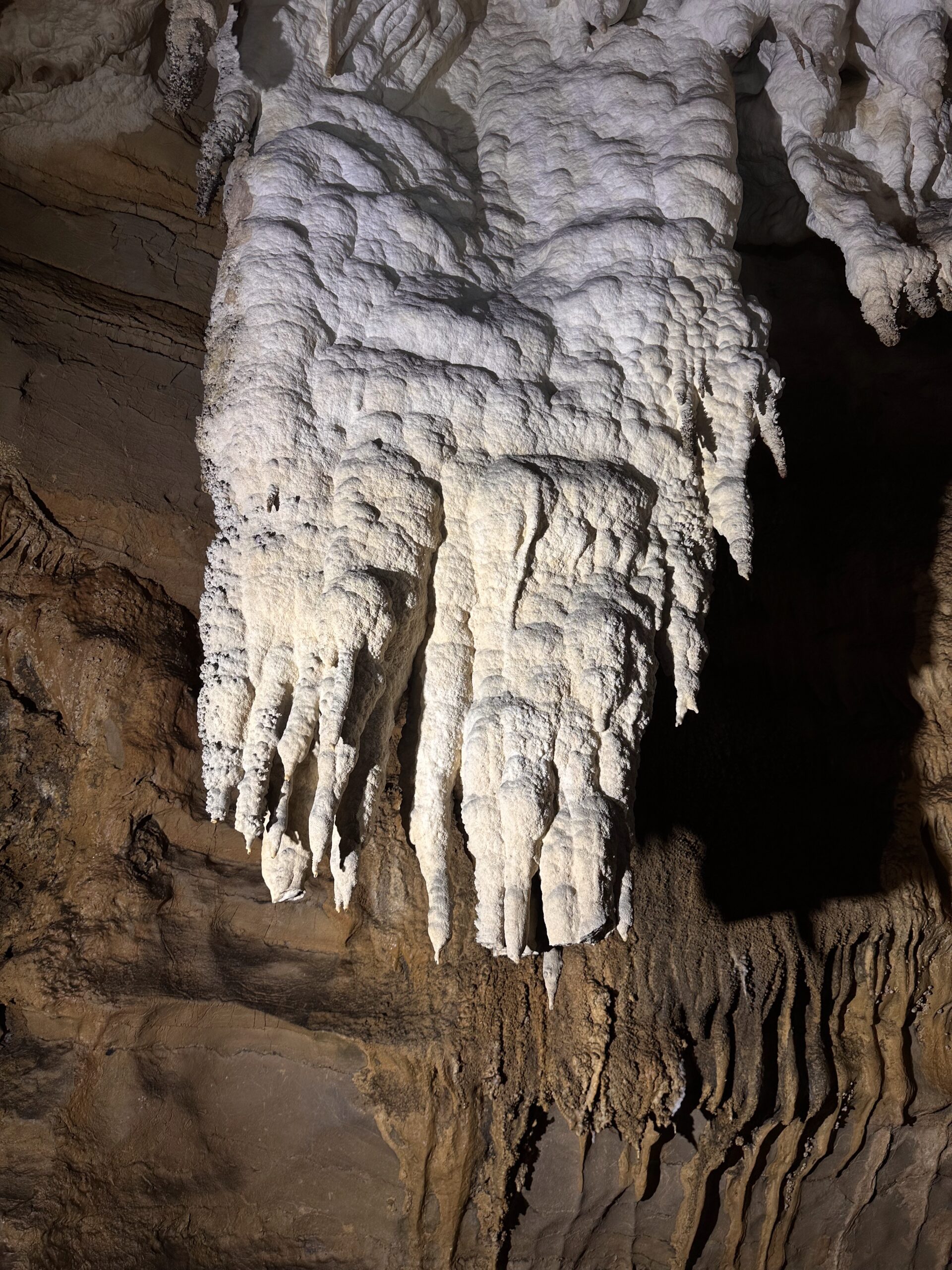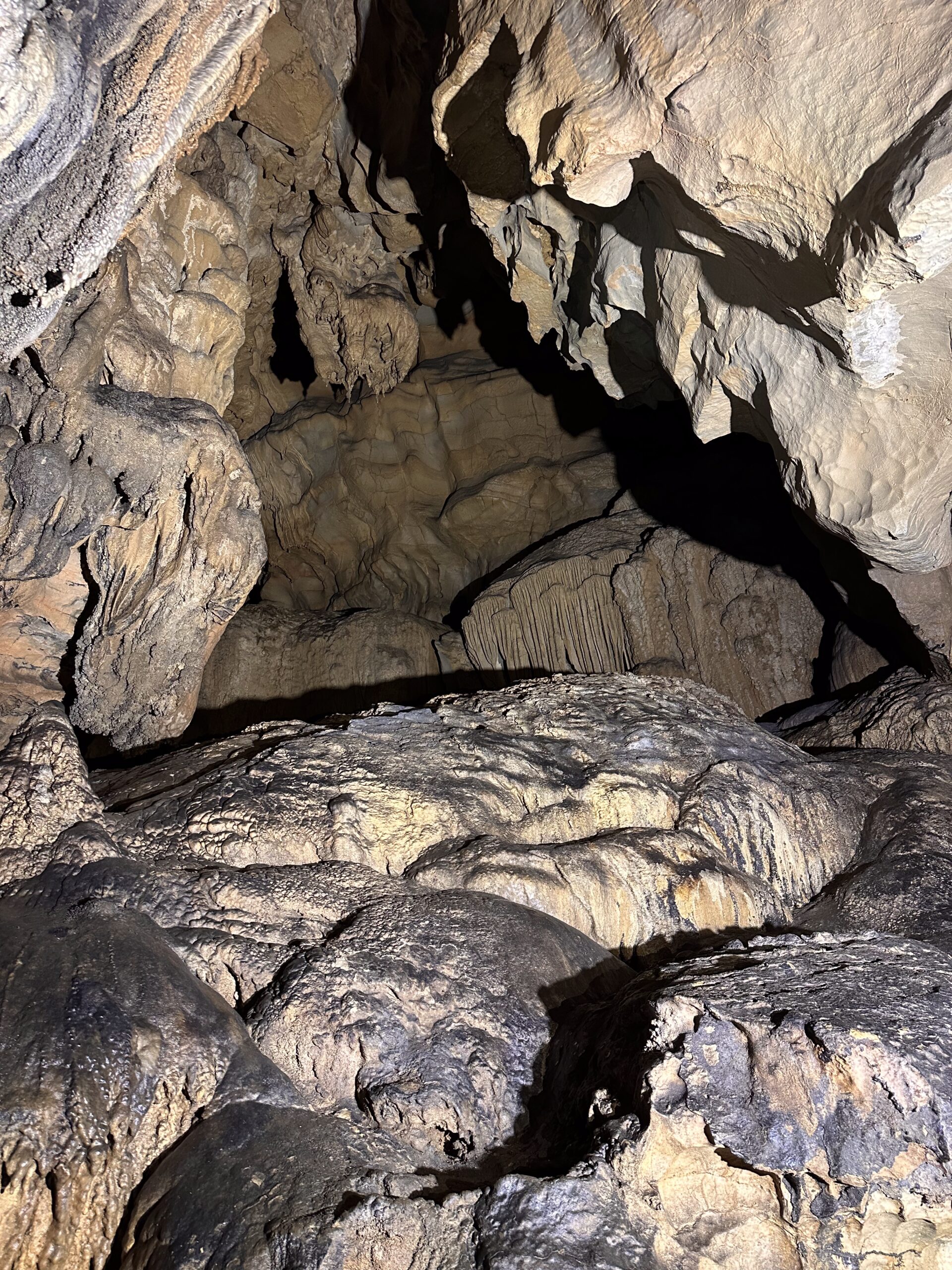 开车到达洞口后,领队开始帮我们穿上探洞服并安装装备,全副武装后,我们开始进洞,原本对探洞没有太高期待,但进去后发现洞内的景象非常奇妙。洞里的钟乳石形态各异,据说它们的生长是从一种很小的空心石管——“鹅管”开始,每年只能长 2 毫米。这些石头可能已经生长了上百甚至上千年,才形成如今的模样。由于贵州的喀斯特地貌,据说这里大大小小的溶洞多达 5000 多个。