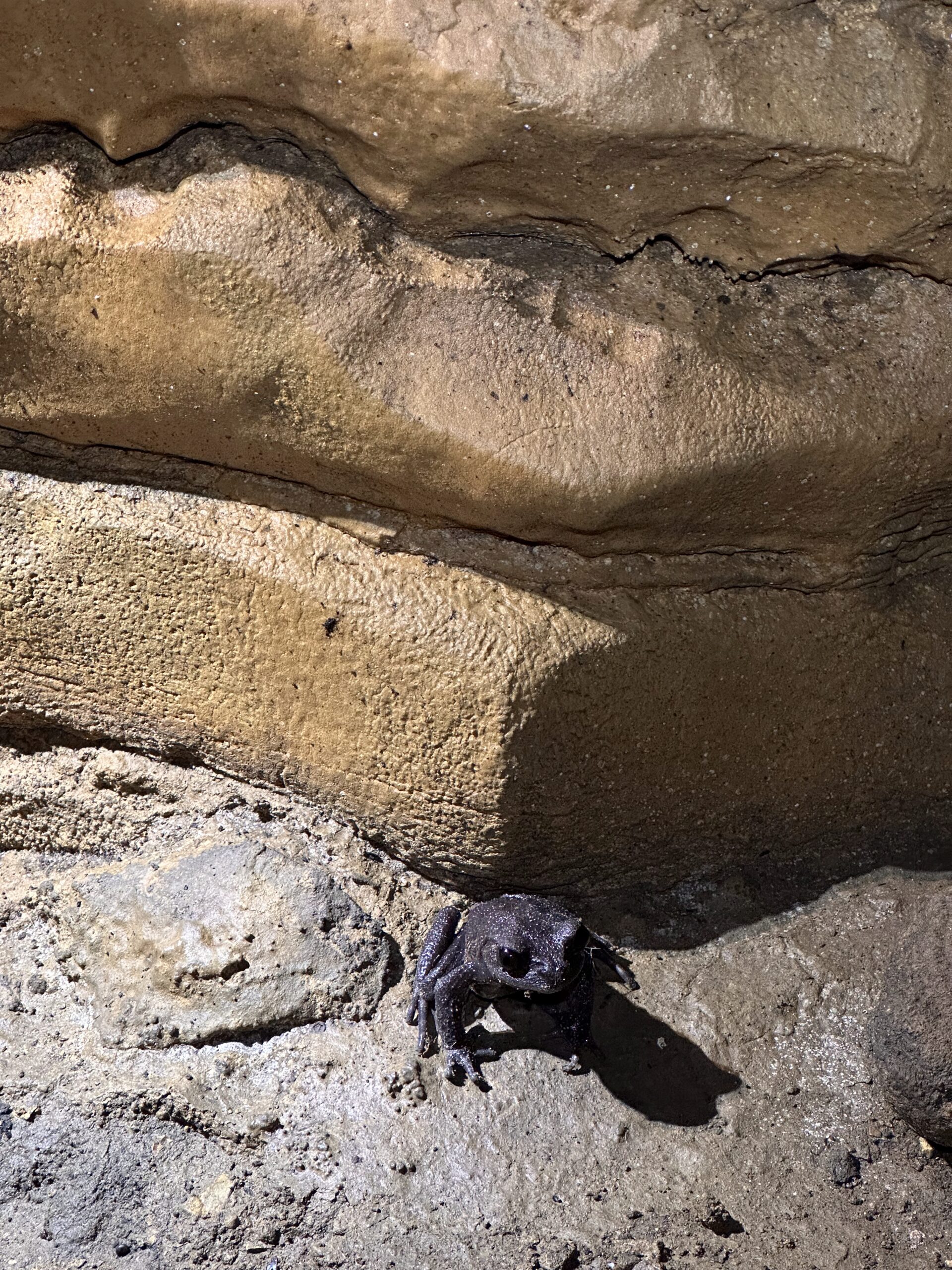 在我们返程快到洞口时,又发现了照片里这种叫盲蛙的动物,顾名思义,盲蛙的眼睛是看不见的,它们只能靠声音分辨,在往前跳的时候,也经常会撞到石头上,另外这种蛙还是国家二级保护动物。