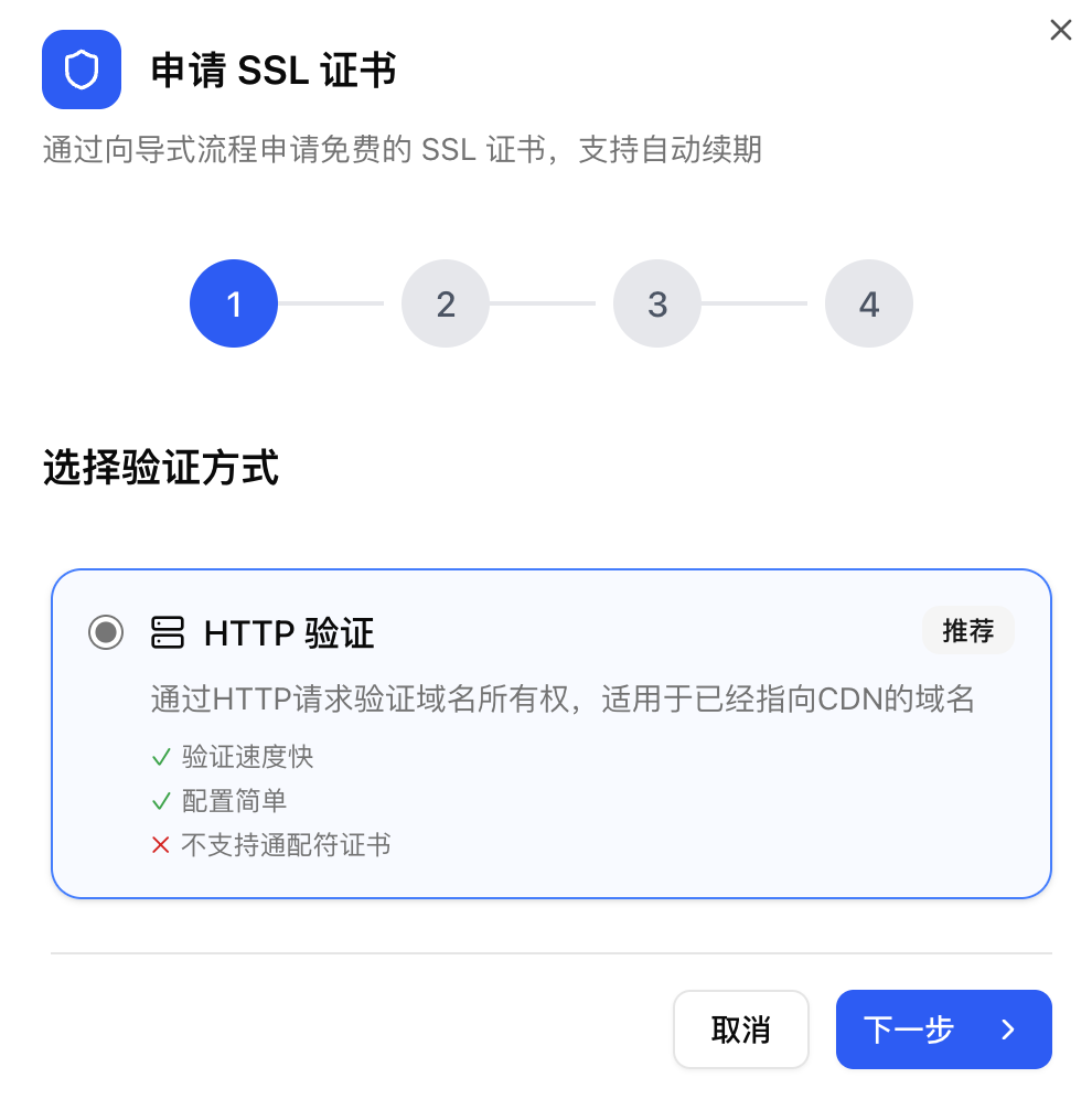 • 访问协议选择 HTTP,后面创建好后续申请证书再打开 HTTPS;