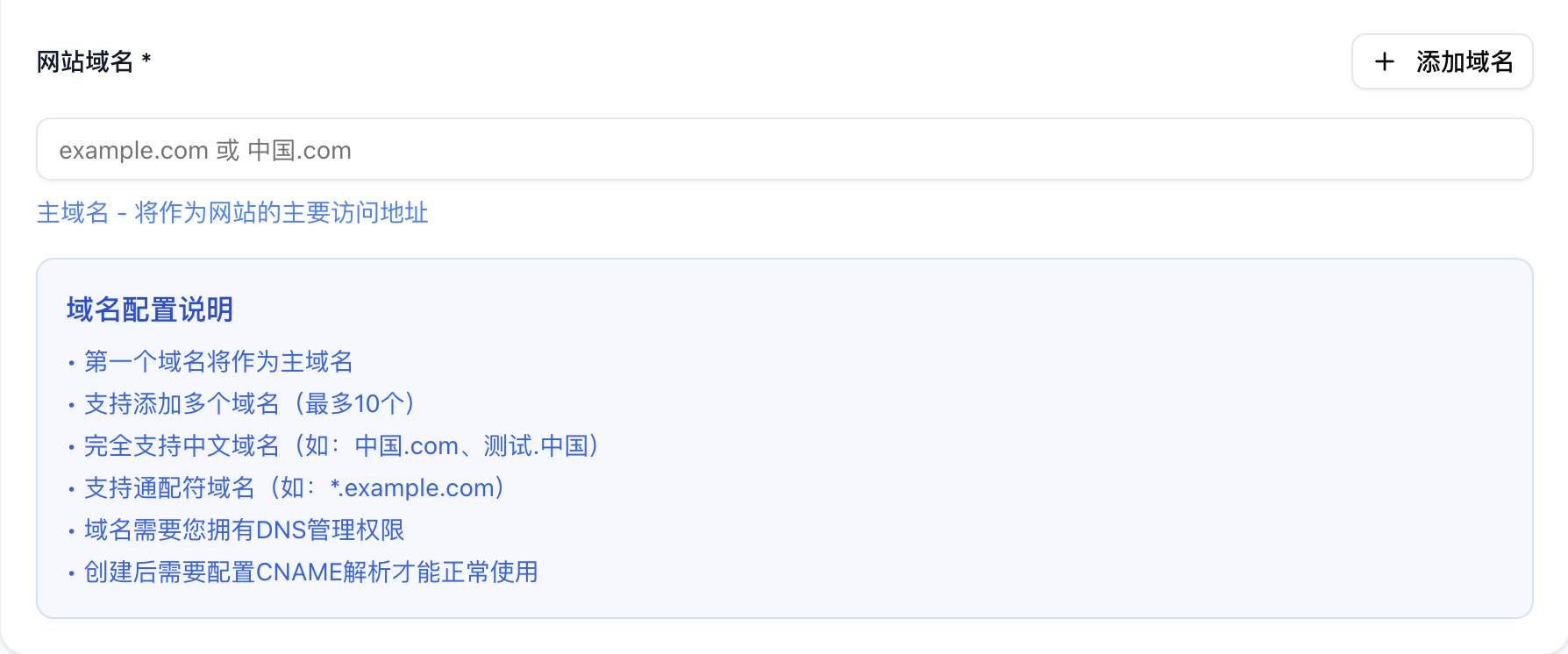 *注意,如果你希望直接配置主域名,则直接填写你的根域名。