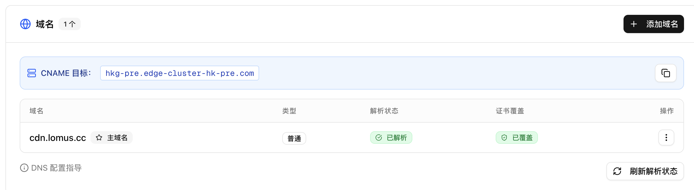 这时候来到了 DNS 解析,复制后台提供的域名,然后到 cloudfare 的 DNS 板块: